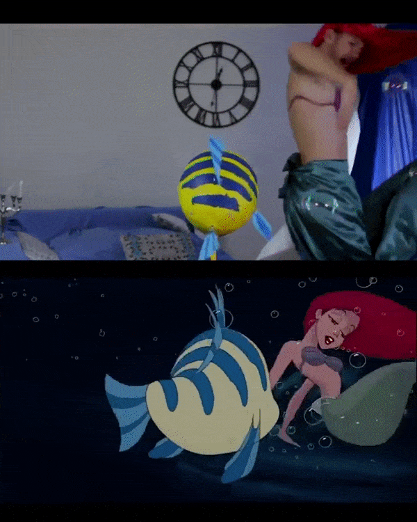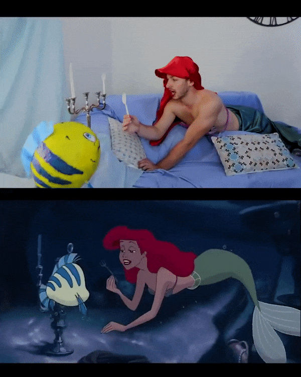 Anh chàng ấy là Alex Ramirès - diễn viên hài đến từ nước Pháp. Anh đã hoá thân thành "chàng tiên cá" với phục trang đơn giản cùng bối cảnh giống bản gốc đến 90%.