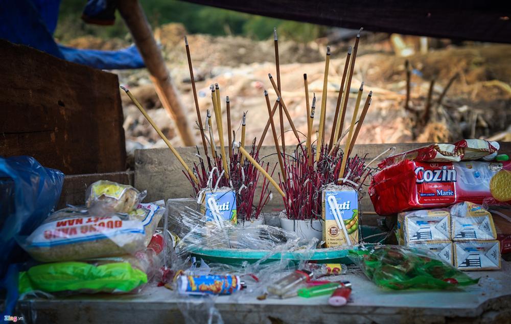 Ngồi trong căn lều tạm, bà Hà Thị Dừn (68 tuổi, mẹ anh Dưng) cứ liên hồi khóc và gọi tên cô con dâu xấu số nay vẫn chưa tìm thấy. Những người dân trong bản thay nhau đến an ủi người phụ nữ ở tuổi xế chiều và thắp nén hương lên bàn thờ được anh Dưng dựng tạm ngay trên nền căn nhà cũ. Nơi mấy ngày trước vợ và con anh còn cười, nói rôm rả chờ anh đi làm về giờ đây nó đã thành đống đất đá ngổn ngang.