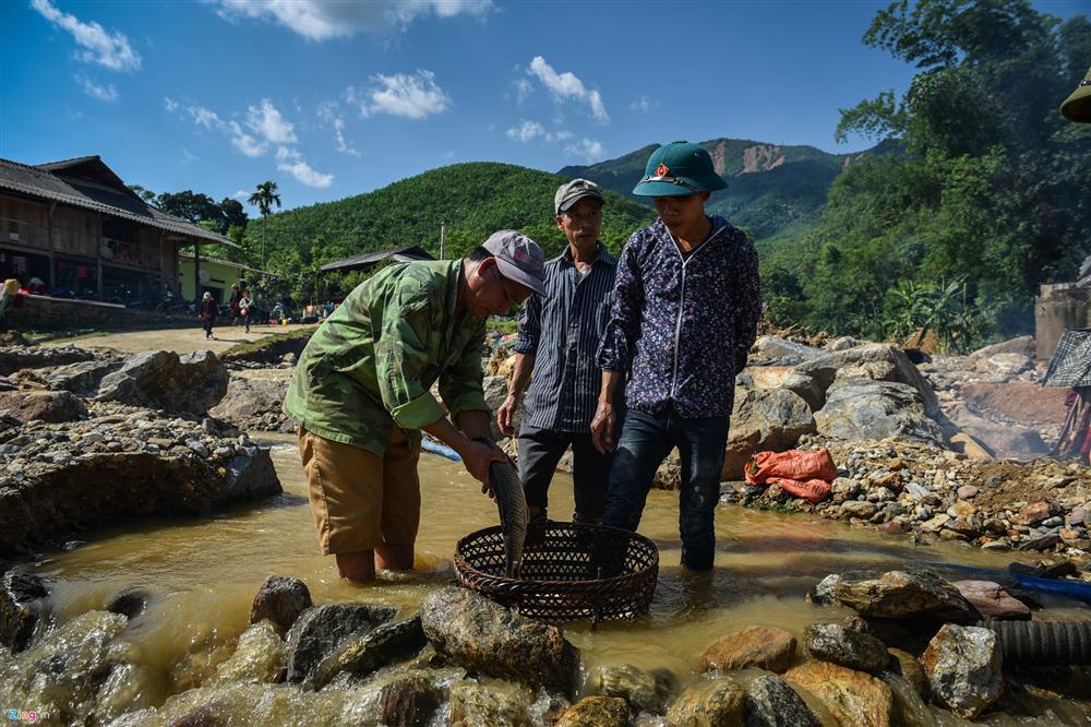 Cũng như bà con trong bản, anh Trung (21 tuổi) máy ngày nay đều chân đất lội từ mương nước này qua hố sâu khác, cứ nơi nào có nước là có dấu chân anh ta với mong muốn tìm thêm được ít cá trôi ra từ hồ. Chàng thanh niên kể đầu năm gia đình anh đầu tư tiền đào ao trên rẫy nuôi cá trắm. Cá lớn sắp thu hoạch được thì cơn lũ đổ về cuốn trôi hết mọi thứ.