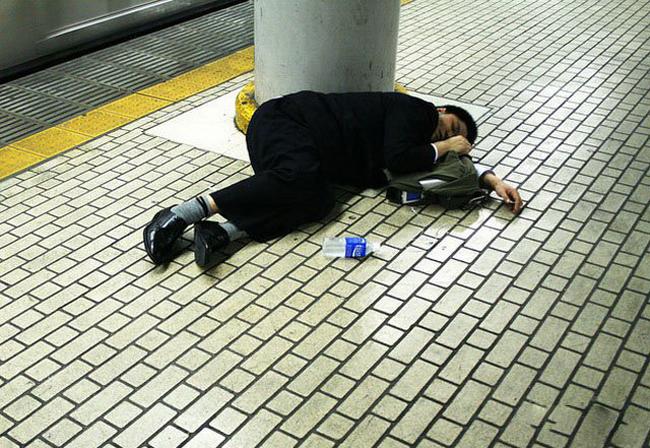 Tranh thủ lúc chờ tàu ngủ một giấc cho đỡ mệt.