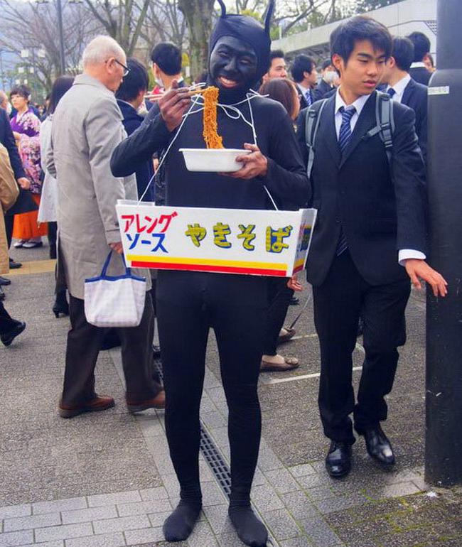 Hóa trang thế này ăn ở nơi công cộng không sợ xấu hổ nữa.