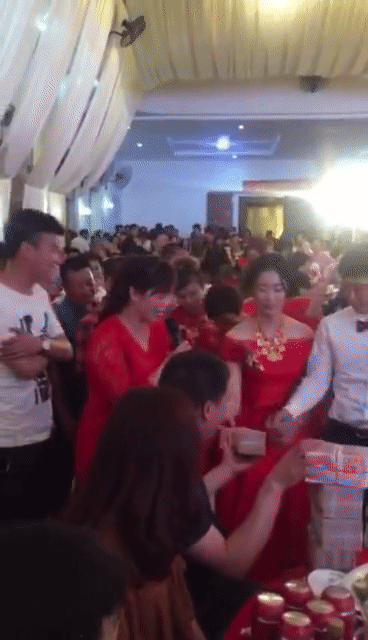 Sự việc tiếp tục diễn ra khi cặp đôi tiến sang bàn bên cạnh và lại tiếp tục cúi đầu cảm ơn. Đến cuối video, cô dâu chú rể thậm chí phải mang cả bao tải đựng tiền vì không thể cầm hết.