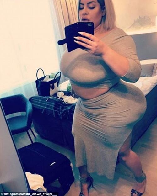 Sau 3 lần phẫu thuật, Natasha Crown có vòng 3 lên tới 178cm. Cô cao 1m78 và hiện nặng 134kg