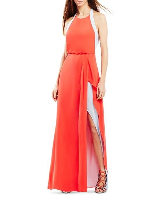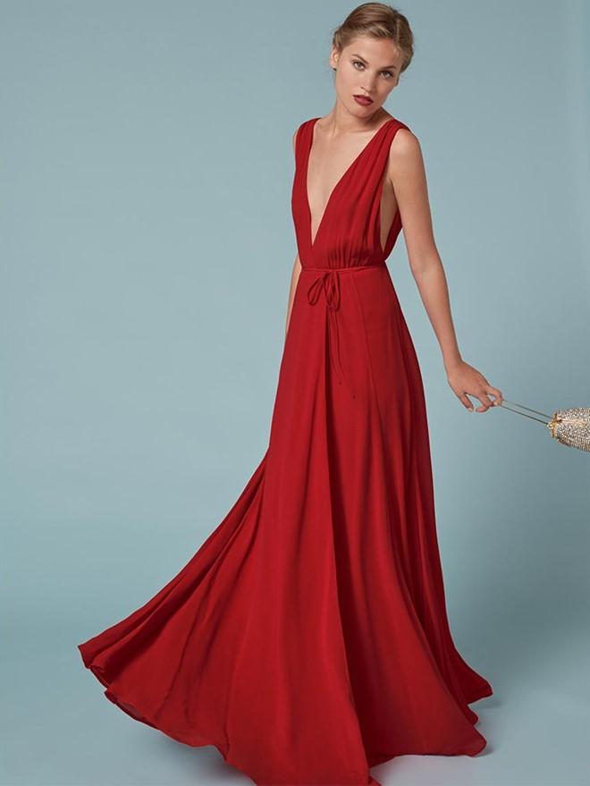 nhàng hơn một chút, hãy chọn một chiếc đầm dài xẻ cao ở phía trước với phần cổ yếm