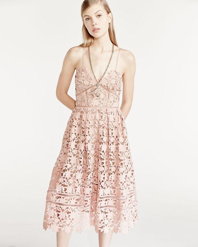 dạ hội không quá hở nhưng vẫn gợi cảm như đầm ren 2 dây hồng xinh xắn.