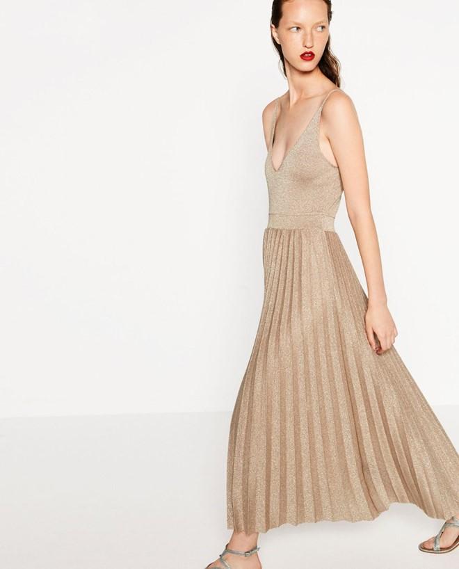 chiếc váy có chất liệu metallic nhưng không hào nhoáng với gam màu nâu trầm. Nếu