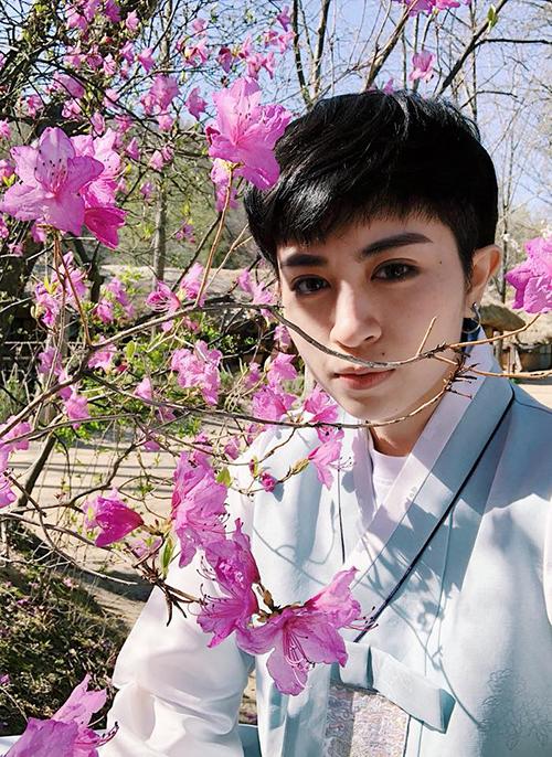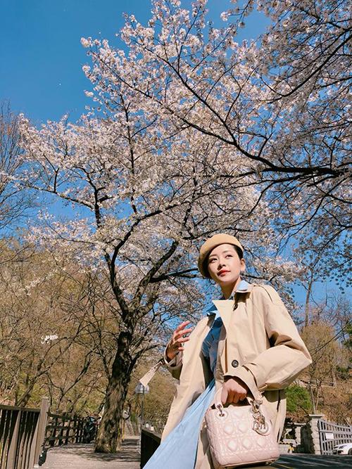 Cùng thời điểm, cô bạn thân tri kỷ một thời của Gil Lê - Chi Pu cũng có mặt tại Hàn Quốc. Cô có một bộ ảnh lãng mạn dưới con đường rợp bóng hoa anh đào.