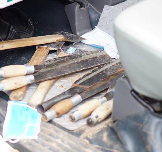 Dao, rìu mà nhóm thanh niên trang bị để hỗn chiến. Ảnh: V.D.