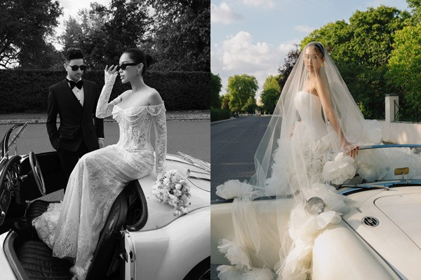 Trong bộ ảnh, Tiên Nguyễn hóa thân thành nàng dâu quý tộc, khoác lên mình loạt váy cưới tinh xảo đến từ các thương hiệu Nicole Felicia Couture, Berta và Pallas Couture Privée. Trong khi đó, chú rể Justin lịch lãm trong bộ suit đen. Cả hai được khen vô cùng xứng đôi.