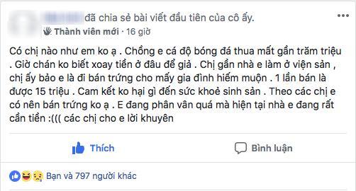 Cam kết không hại gì đến sức khỏe sinh sản. Theo các chị em có nên bán trứng không ạ. Em đang phân vân quá mà hiện tại nhà em đang rất cần tiền. Các chị cho em lời khuyên với".