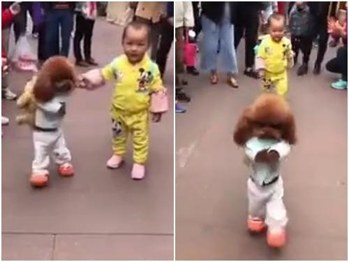 Nhưng khi phát hiện đó là một chú chó thuộc giống Poodle, họ đã có chút ngạc nhiên cũng như hiếu kỳ trước “màn biểu diễn” đầy ngộ nghĩnh của nó.