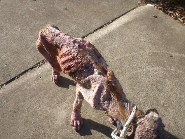Chú chó này bị ghẻ rất nặng, đó là hiện tượng khi chó mèo bị nhiều ve bọ quá mức, làm hệ thống miễn dịch của chó mèo bị yếu và gây làm nổi nhiều hạch to và gây ra tình trạng nhiễm trùng da nghiêm trọng.