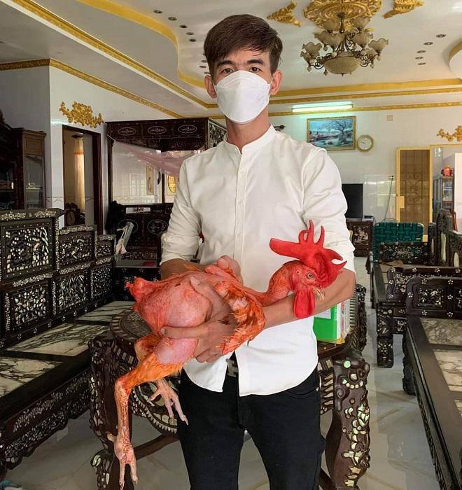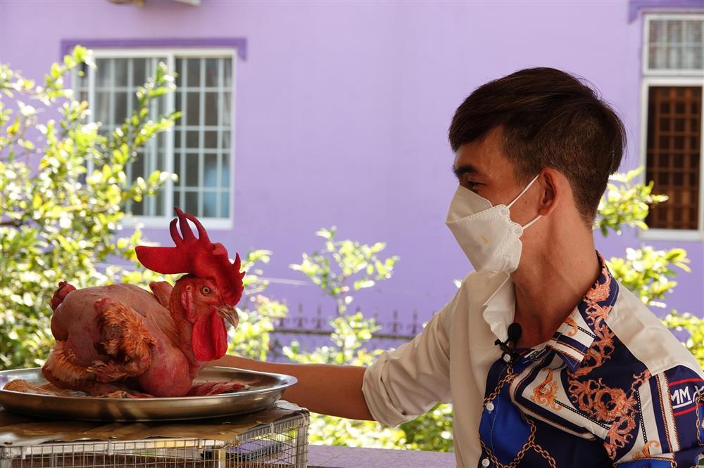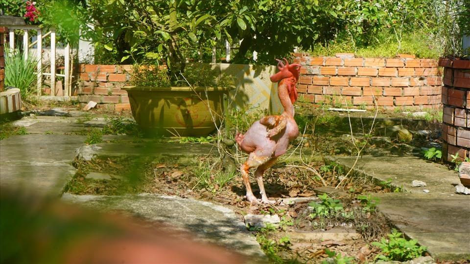 Nhưng anh Phong lại được biết đến vì chú gà cưng của mình nhiều hơn là cơ ngơi, gia sản. Đó là một chú gà gần như không có lông, trên cánh và đùi loe hoe vài cọng. Nhiều người gọi đùa đây là chú gà "khỏa thân".