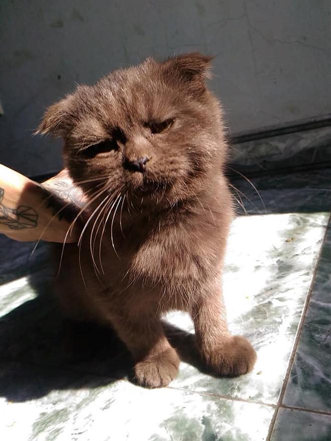 Anh Thành cho biết Đầu Đất thuộc giống mèo Scottish, có màu lông chocolate hiếm gặp. Dù sở hữu thân hình khá mập mạp, già dặn "anh bạn nhỏ" mới chỉ là "cậu bé" 6 tháng tuổi, nặng khoảng 5 kg.