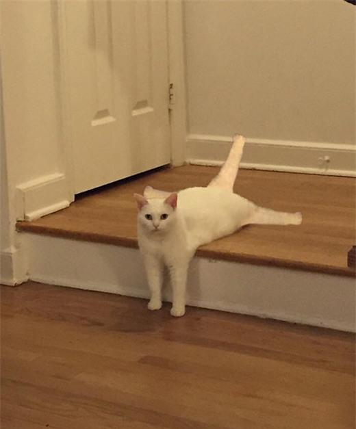 Với kiểu tạo dáng "khó đỡ" trông như chỉ có 2 chân, cũng thật dễ hiểu vì sao chú mèo này được cư dân mạng kịch liệt chế ảnh đến như vậy. (Ảnh: Internet)