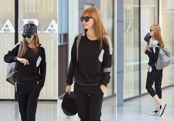 Chọn trang phục thể thao có họa tiết cũng là sự lựa chọn được các cô gái mùa thu yêu thích.