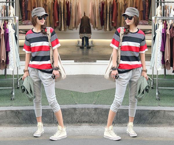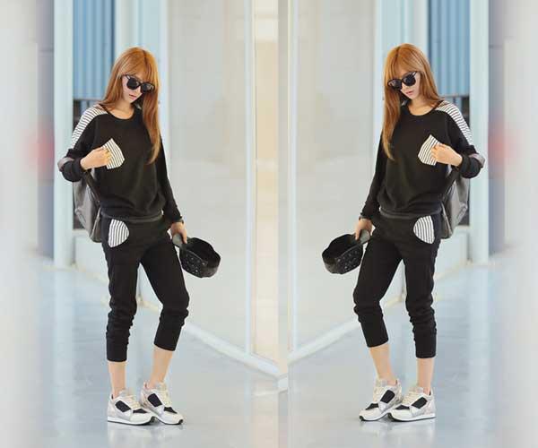 Những ngày tiết trời se lạnh bạn nên chọn trang phục thể thao may bằng chất liệu nỉ giữ ấm, đồng thời phần quần may dáng ngố dài cũng giúp bạn thêm trẻ trung.
