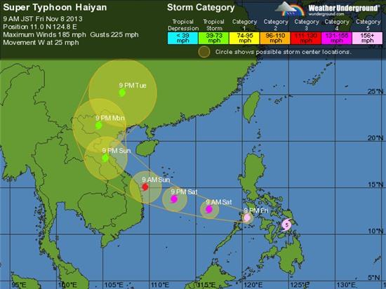 Trang Weather Underground dự báo về siêu bão Haiyan.