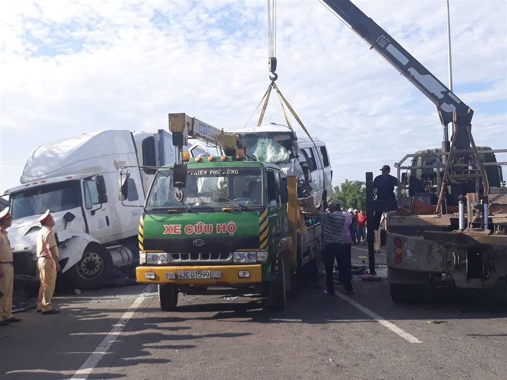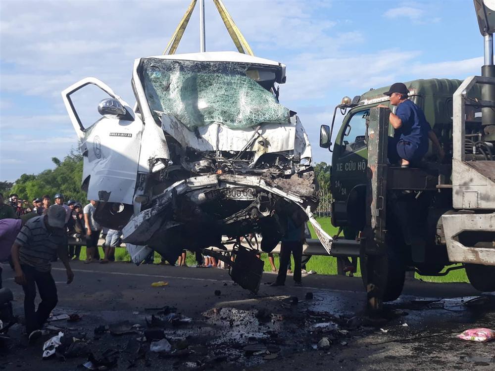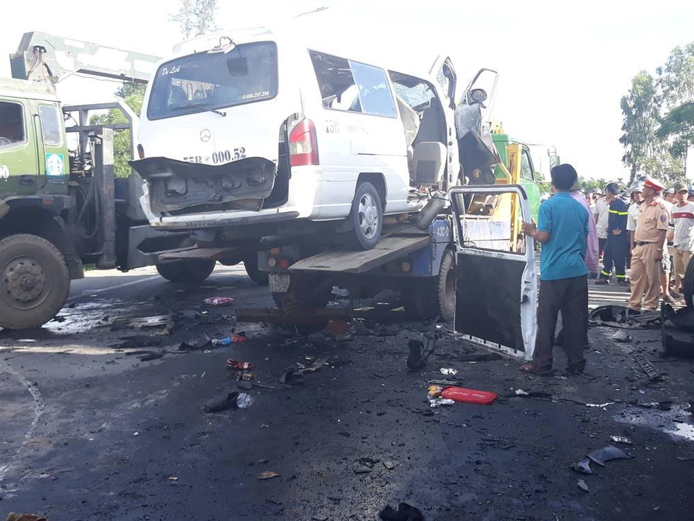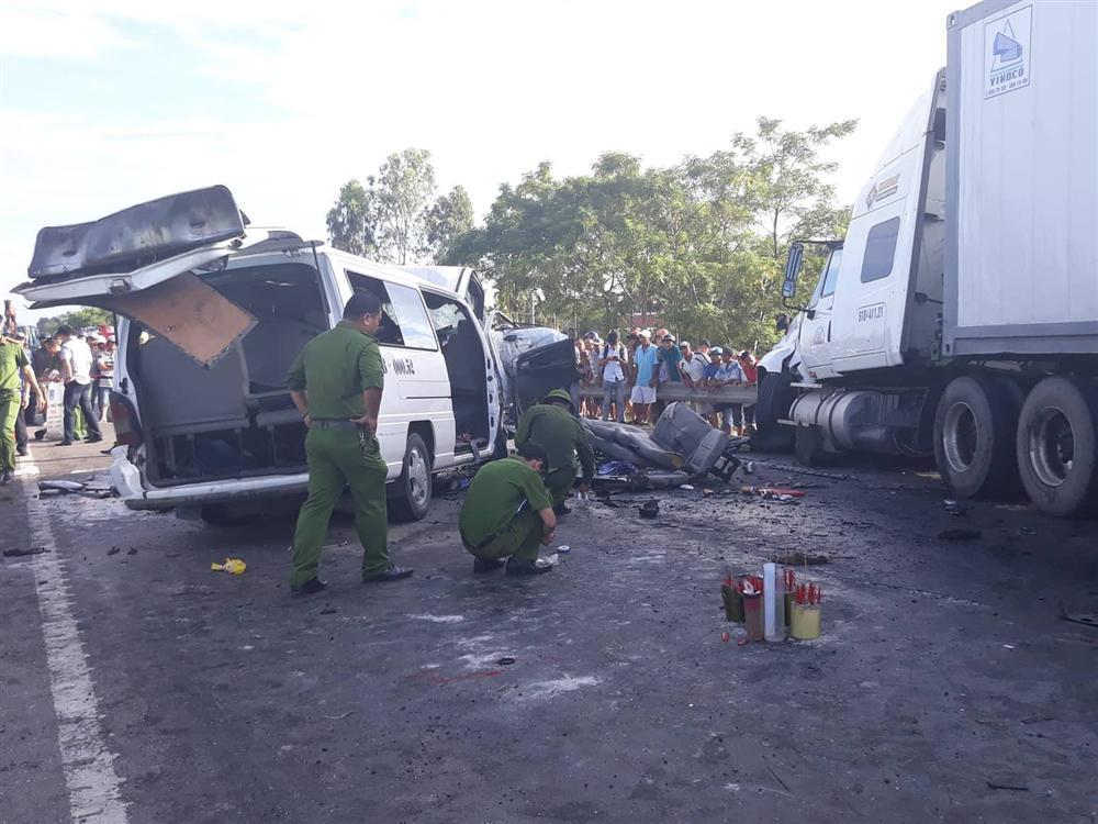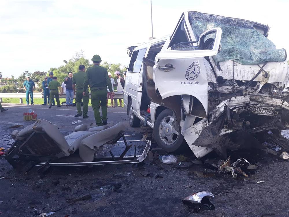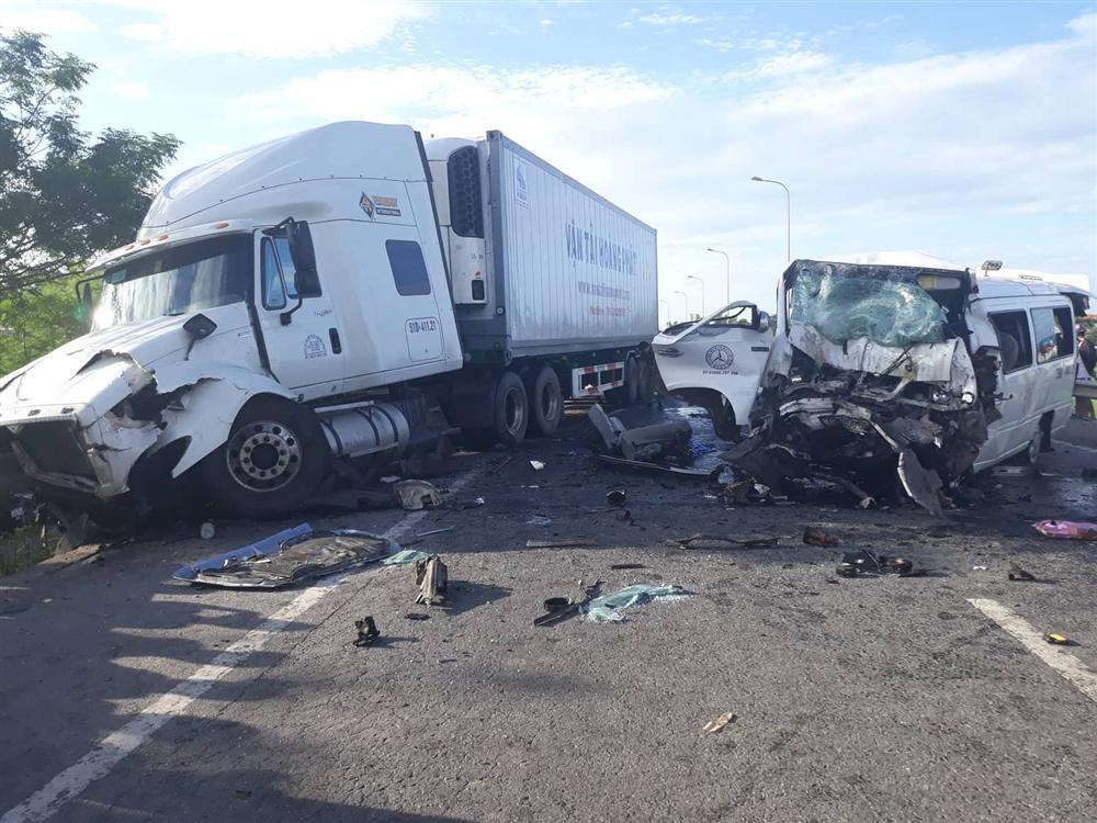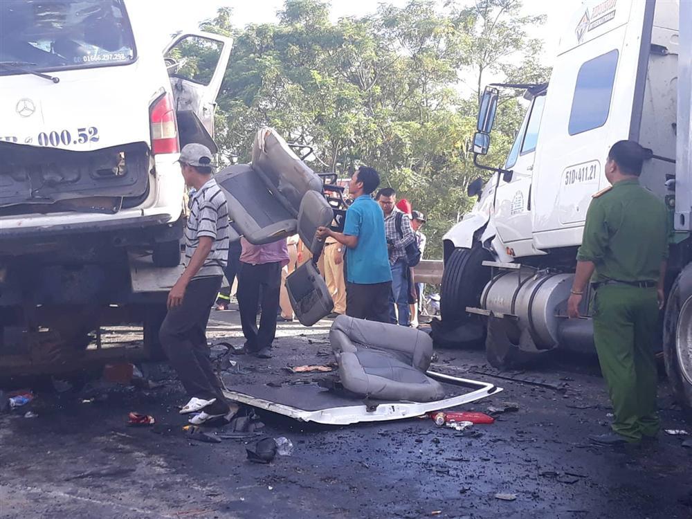 Cú tông trực diện với  xe container BKS 51D-411.21, kéo theo rờ-moóc BKS 51R-215.75 khiến 13 người trên xe khách tử vong tại chỗ, 4 người còn lại bị thương.