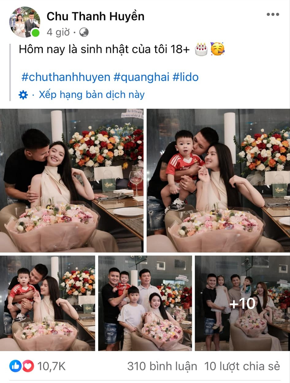 Đặc biệt, khoảnh khắc tình tứ của Quang Hải bên Chu Thanh Huyền khiến dân tình không khỏi chú ý. Dù đã kết hôn gần 2 năm và có con trai đầu lòng nhưng cả hai lúc nào cũng như vợ chồng son, không ngại thể hiện tình cảm trên mạng xã hội.