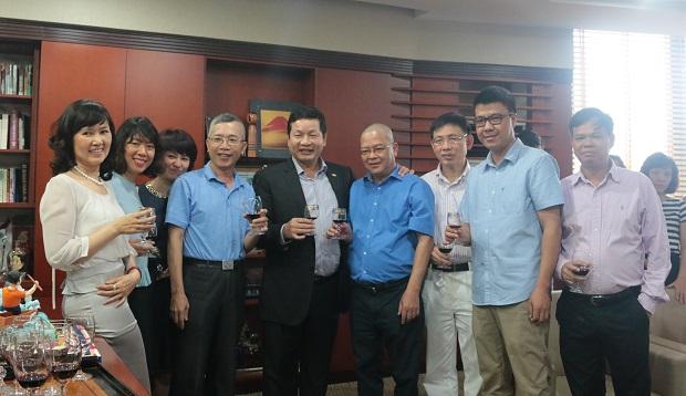 Đồng nghiệp chúc mừng sinh nhật anh Trương Gia Bình tại cơ quan.