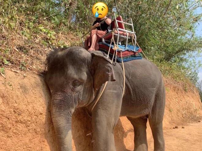 Hình ảnh chú voi nhỏ gục đầu bên tảng đá khi chở khách du lịch được chia sẻ trên diễn đàn mạng tối 9/7 khiến nhiều người không khỏi xót xa.