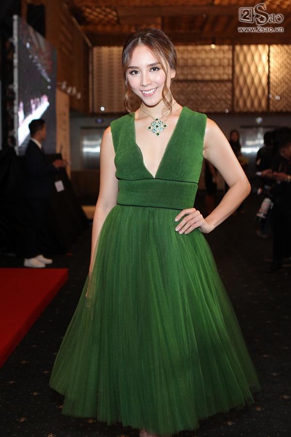 Dương Trương Thiên Lý diện váy xẻ cổ sâu đầy gợi cảm