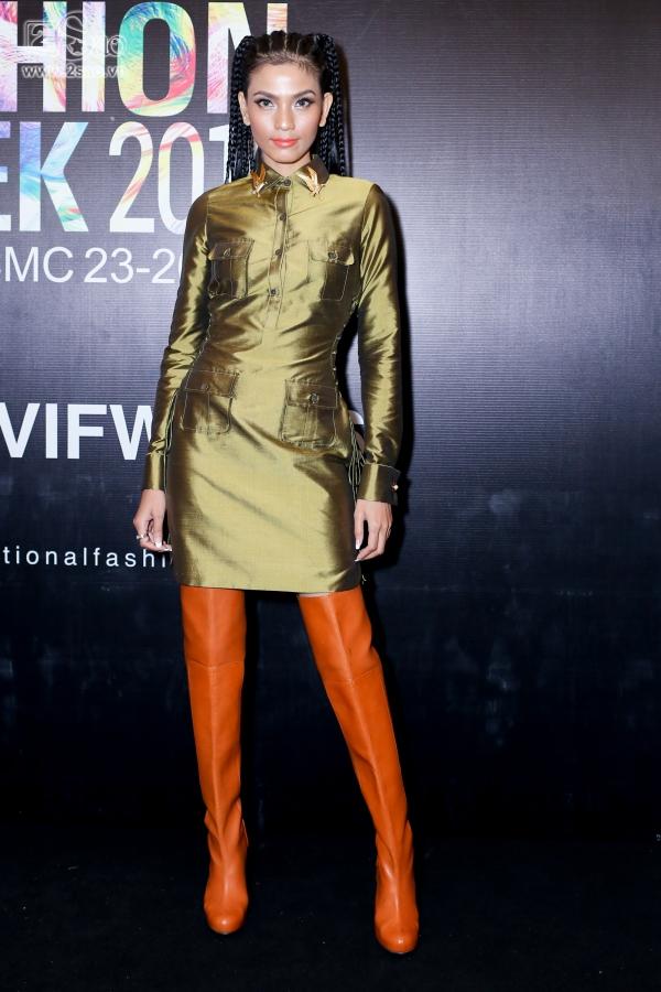 (2Sao) - Trên thảm đỏ của ngày cuối cùng tuần lề thời trang Vietnam International Fashion Week Xuân Hè 2016 là sự hội tụ của rất nhiều hoa hậu, á hậu đến ủng hộ NTK Lê Thanh Hòa