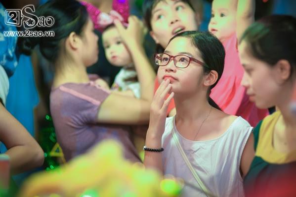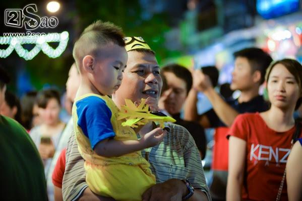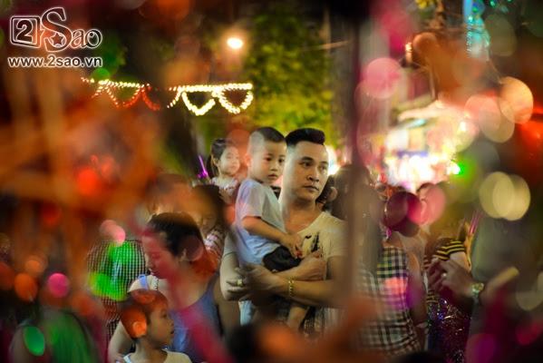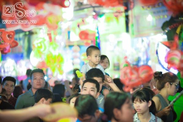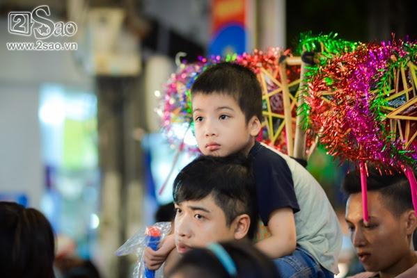 Do lượng người đổ về phố Hàng Mã quá đông, nhiều em nhỏ đã được bố mẹ bồng bế trên vai để thoát khỏi không khí nóng nực và chật chội tại đây.