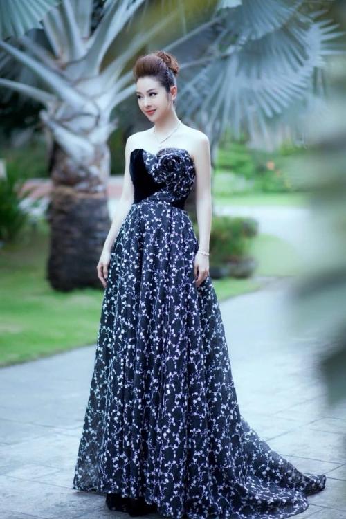 Thiết kế có kiểu dáng xòe, cúp ngực, màu sắc nhẹ nhàng làm nổi bật nhan sắc của bà mẹ trẻ. Nếu trong bộ cánh này Hoa hậu Jennifer Phạm được ca tụng với nhan sắc “không tuổi” vạn người mê thì Nhã Phương được ví như một nàng công chúa xinh đẹp trong một câu chuyện thần thoại.
