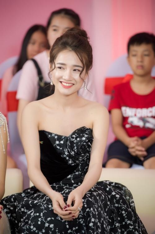 Cô chọn mái tóc búi điệu đà càng làm tăng vẻ ngọt ngào, mong manh.