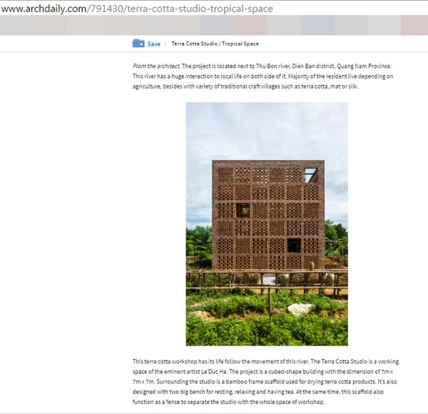 Ngày 17/7 vừa qua, tờ Tạp chí kiến trúc Archdaily danh tiếng của Mỹ đã cho đăng tải hình ảnh ngôi nhà 3 tầng độc đáo bằng đất nung của nghệ nhân gốm nổi tiếng Lê Đức Hạ.