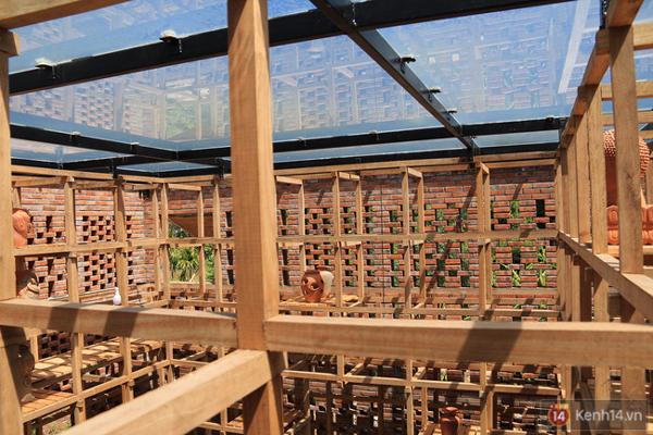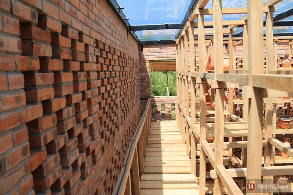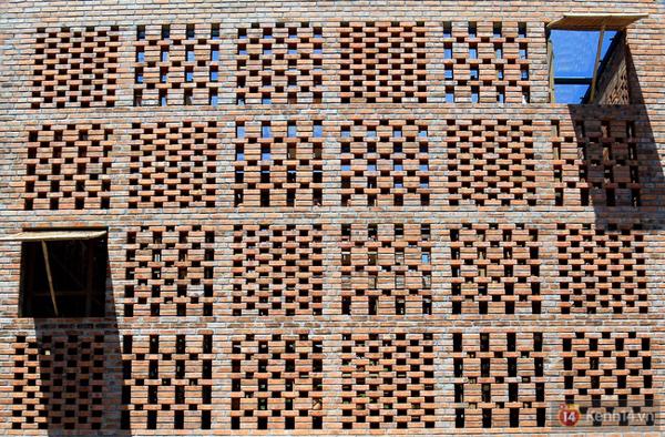 Những viên gạch đất nung được xây cách viên theo kết cấu khá đặc biệt tạo nên các lỗ thông gió giúp điều hòa không khí bên trong ngôi nhà và đón ánh nắng mặt trời xuyên qua các ô nhỏ đều đặn...