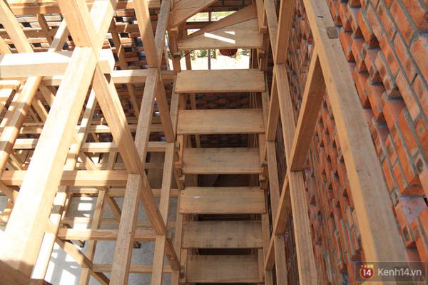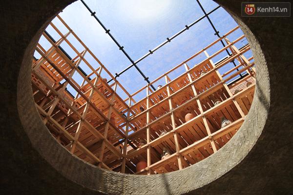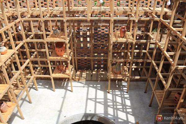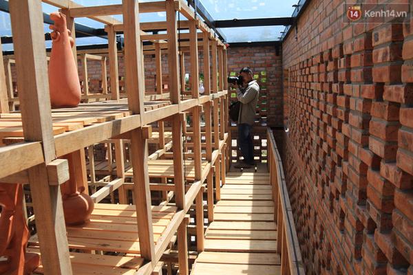 Căn nhà có 3 tầng và được bao quanh bằng khung gỗ, trong đó tầng trệt là nơi làm việc còn tầng 2, 3 là nơi trưng bày các sản phẩm gốm.