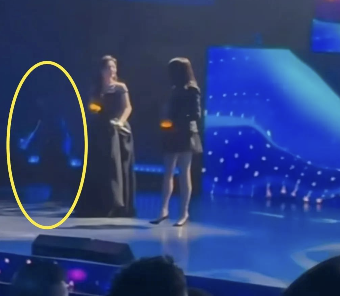 Cú ngã của đại hoa đán mạnh đến mức khiến 2 nữ diễn viên đàn em đang đứng trên sân khấu chuẩn bị tiết mục hát cũng thoáng giật mình. Ngay lập tức, Thành Long, Vương Nhất Bác chạy lại xem xét tình hình, đỡ Chương Tử Di đứng dậy. BTC Hoa Biểu cũng nhanh chóng đưa nữ diễn viên đến bệnh viện để cấp cứu.