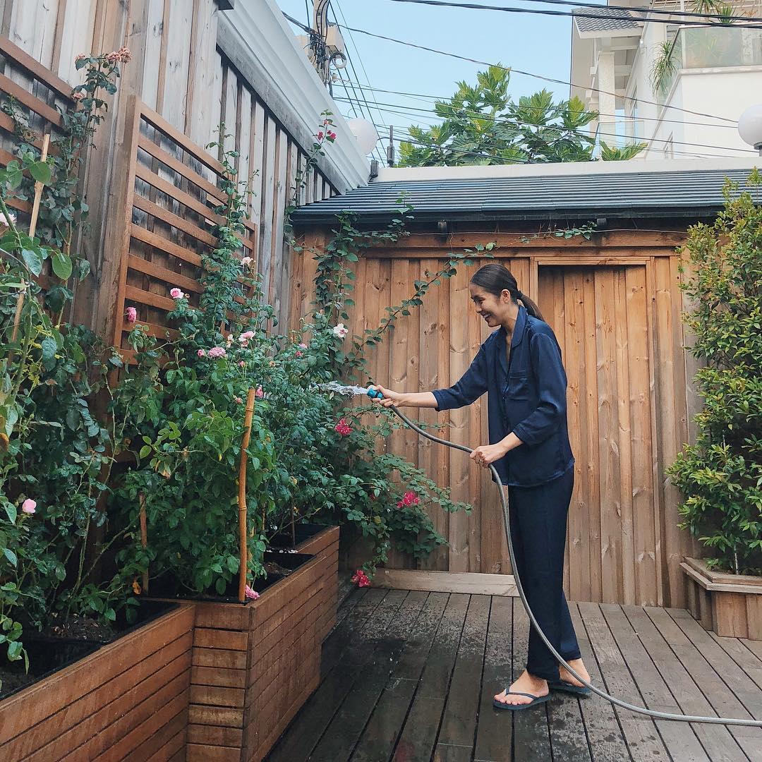 Trong hình, nữ diễn viên Bỗng dưng muốn khóc mặc bộ quần áo màu xanh, cười rạng rỡ đứng tưới hoa. Nhiều lời ngưỡng mộ khi chứng kiến giây phút bình yên của mỹ nhân từng một thời đình đám. "Chị ấy trồng hoa đẹp quá kìa. Thích cuộc sống bình yên thư giãn của chị. Mãi yêu thần tượng của em", người hâm mộ bày tỏ.