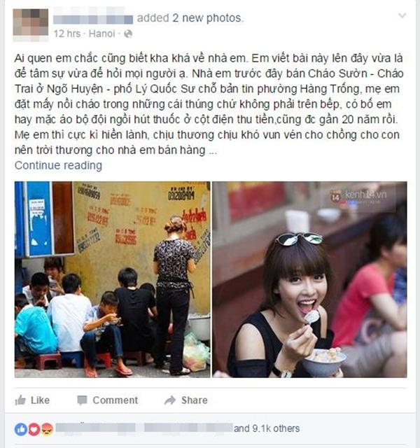 "Hiện tại bọn em đang có kế hoạch tìm một cửa hàng nho nhỏ bắt đầu lại từ đầu để cân bằng cuộc sống. Trong thời gian này, mẹ em tạm thời bán hàng trở lại vào buổi sáng ở đầu phố Lý Quốc Sư. Sáng và chiều nhà em có nhận ship cháo", nickname này kêu gọi.