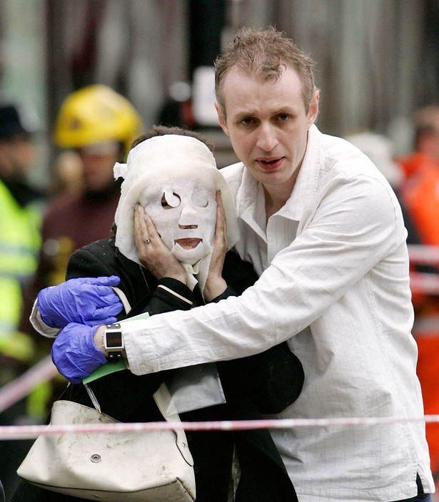 Hình ảnh một người đàn ông ôm một người phụ nữ đang che mặt nạ đã trở thành khoảnh khắc đầy ám ảnh trong vụ khủng bố ở Luân Đôn, Anh ngày 7/7/2005.