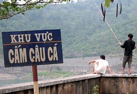 Chắc ở đây nhiều cá nên người ta mới có biển cấm đấy.