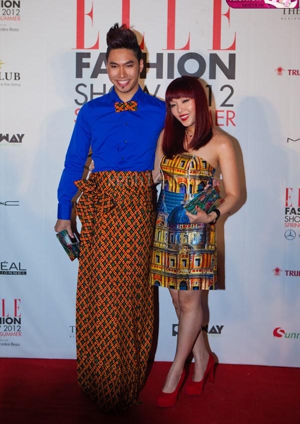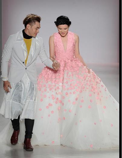 Lý Quí Khánh diện trang phục khó hiểu, váy ngoài quần trên sàn catwalk cùng người mẫu Tuyết Lan.