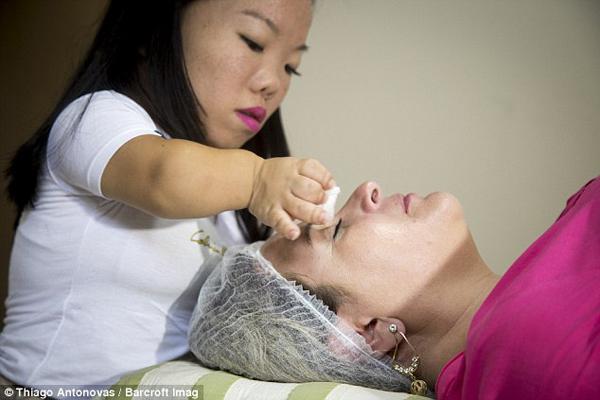 Chị Hoshino làm việc tại một salon làm đẹp...