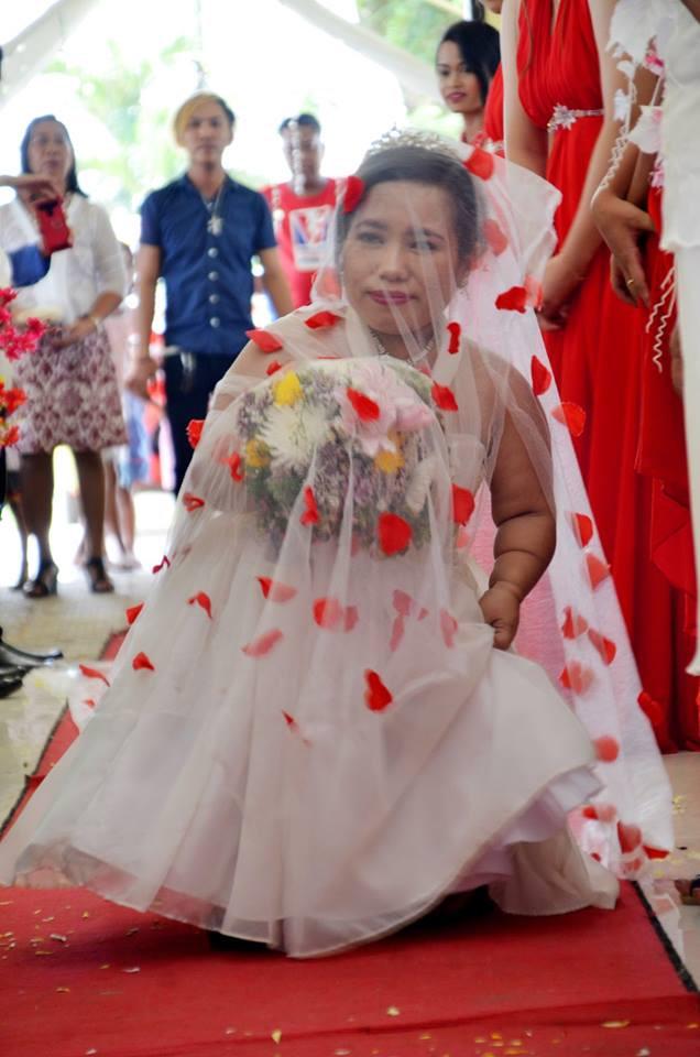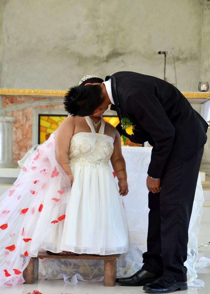 Cô dâu Dallaine Mae Tac-an mắc một căn bệnh di truyền khiến chiều cao ngừng phát triển, đến giờ chỉ được 96 cm. Còn chú rể Lumanao là chàng trai cao to, khỏe mạnh.