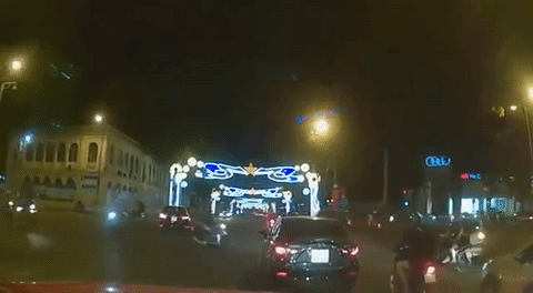 Theo hình ảnh ghi lại từ camera hành trình, khi đèn giao thông đang chuyển xanh, các phương tiện bắt đầu di chuyển thì bất ngờ có 2 thanh niên phóng với tốc độ nhanh vượt đèn đỏ từ hướng khác đến.