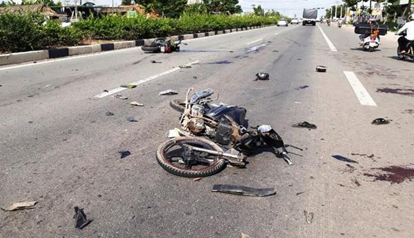 Tại hiện trường, hai xe máy nằm cách nhau hơn 20m, hư hỏng, biến dạng, nhiều mảnh vỡ của hai phương tiện, nón bảo hiểm của các nạn nhân vương vãi khắp mặt đường.