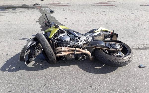 Xe mô tô phân khối lớn cũng bị hư hỏng sau cú đối đầu.