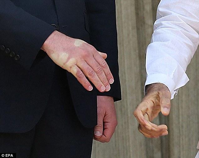 Người ta vẫn thường nói một cái bắt tay thật chặt sẽ thể hiện cho mối quan hệ thân thiết, bền vững. Tuy nhiên, với cái bắt tay của mình, Thủ tướng Modi đã khiến Hoàng tử William có chút lúng túng khi để lại những vết hằn rõ nét trên bàn tay.