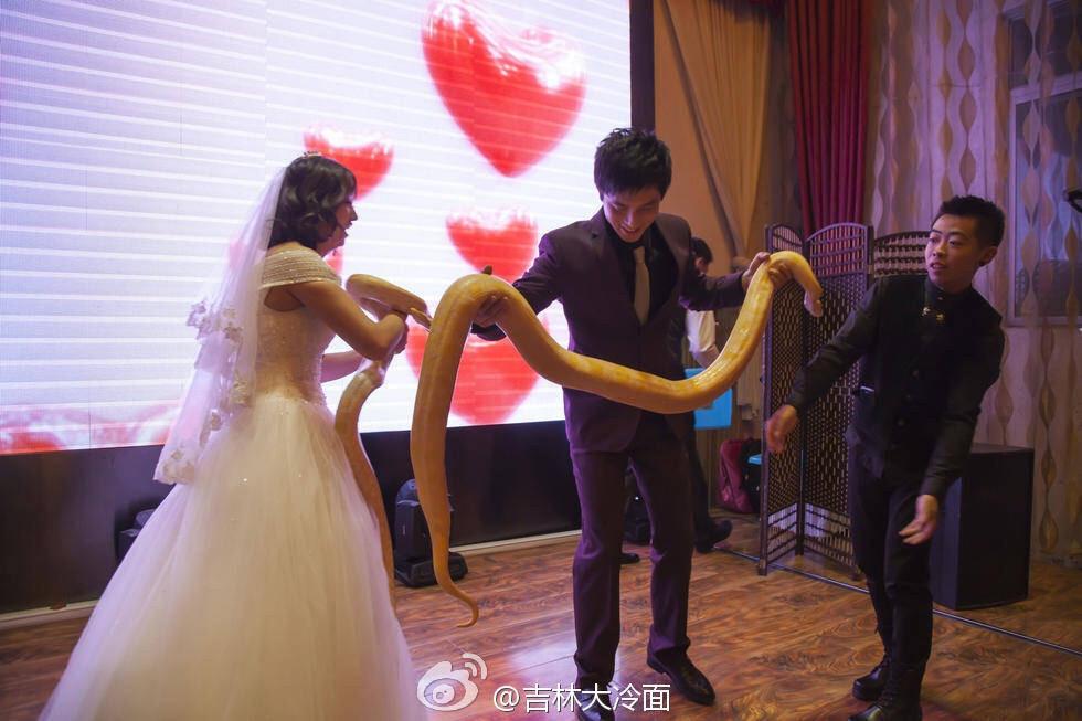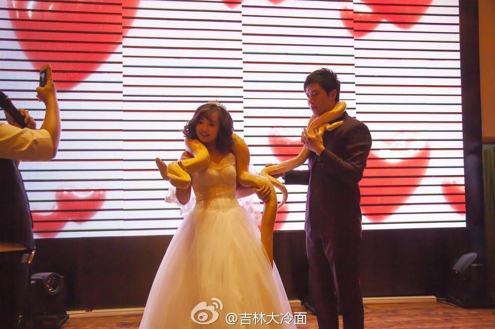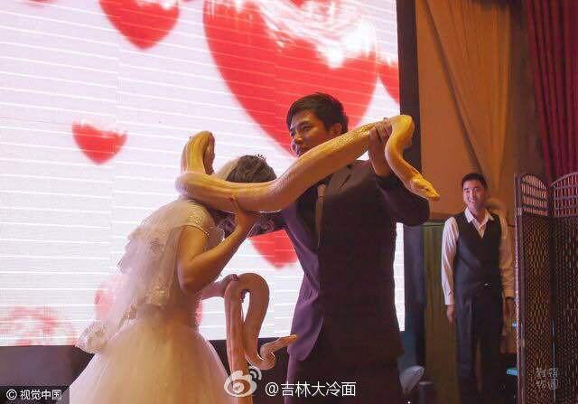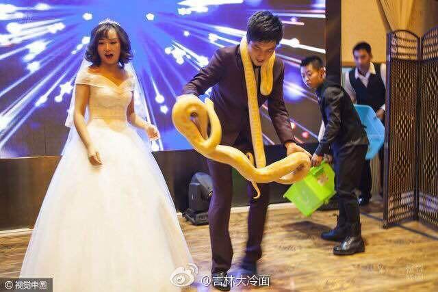 Tuy vô cùng ấn tượng với màn trao quà kiêm trình diễn quấn trăn quan người của hai vị cô dâu chú rể gan dạ này, các vị quan khách ắt hẳn cũng sẽ có người cảm thấy vô cùng sợ hãi và hoảng hồn