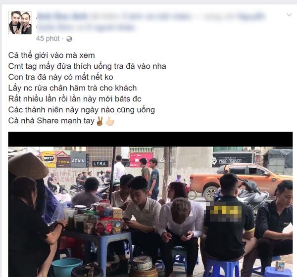 Nhiều hình ảnh từ chủ nhân đoạn clip cho thấy chủ quán trà đá rửa chân vào xô sau đó lấy nước này bán cho khách