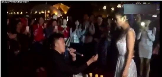 Trước tấm chân tình của bạn gái, chàng trai vội đỡ cô dậy và quỳ xuống, đáp trả tấm chân tình của cô gái bằng một lời cầu hôn .