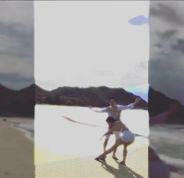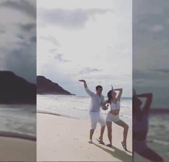 Trong khi Ông Cao Thắng mặc áo sơ mi trắng kết hợp quần short thì nữ huấn luyện viên Giọng hát Việt lại trẻ trung cá tính phô diễn hình thể với áo crop-top. Giữa không gian bao la, cặp đôi Nhi - Thắng cùng uốn éo, nhảy múa đủ tư thế khiến người xem bật cười.
